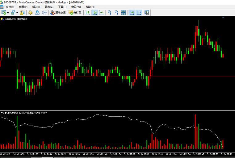 成交量和持仓量是期货交易重要数据, 本软件提供了这两个指标,下图本软件螺纹钢成交量和持仓量视频介绍
